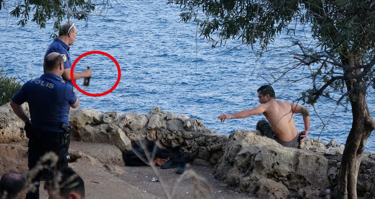 Ekipler falezlerde oturan genci, saatlerce ikna etmeye çalıştı. Annesinin gelmesini isteyen genç, ekiplere annesini arattı. Ekipler anneden yanıt alamayınca falezlerde oturmaya devam eden genç, bu kez polislerden içki istedi.