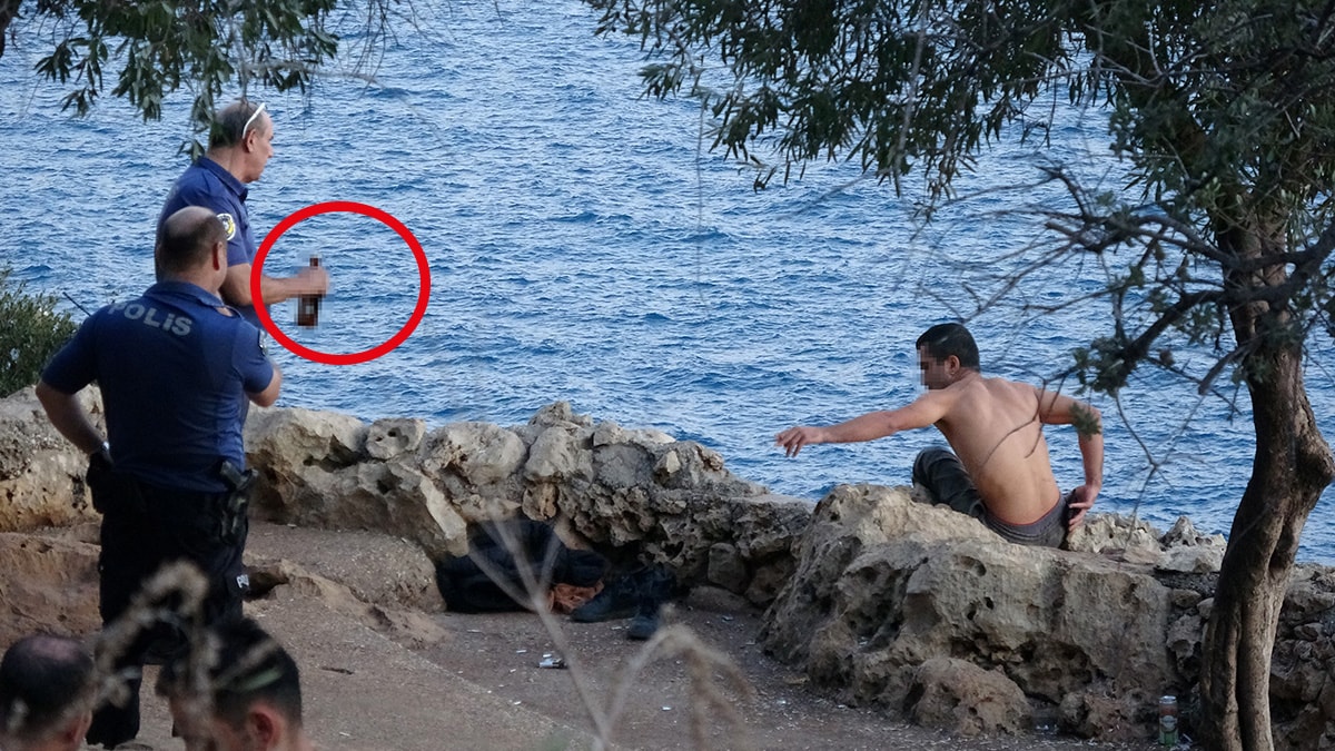 Ekipler falezlerde oturan genci, saatlerce ikna etmeye çalıştı. Annesinin gelmesini isteyen genç, ekiplere annesini arattı. Ekipler anneden yanıt alamayınca falezlerde oturmaya devam eden genç, bu kez polislerden içki istedi.