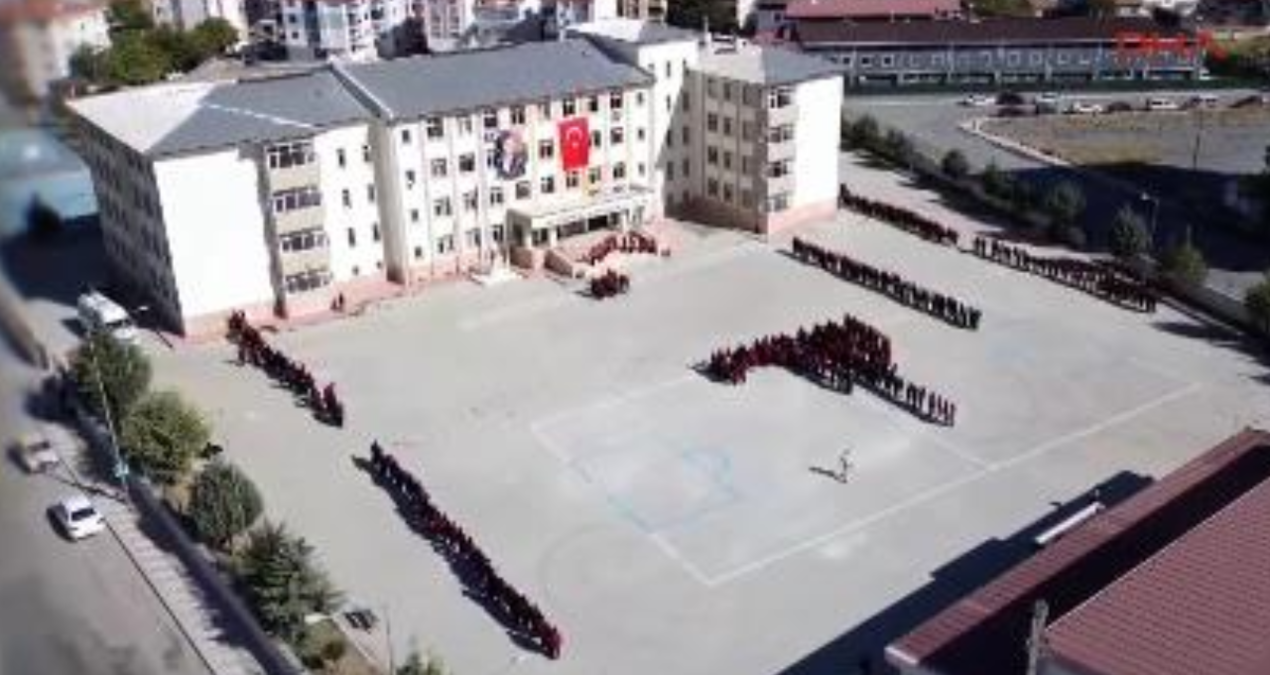 Bu görsel şölen, özel olarak havadan bir drone ile kaydedilerek anı ölümsüzleştirildi. Öğrencilerin coşku dolu performansı, izleyenleri etkileyen bir Cumhuriyet Bayramı kutlaması oldu.