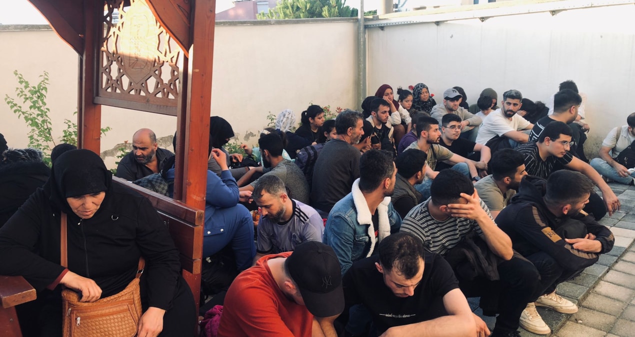 TIR’da yapılan aramalarda dorsenin içerisinde Avrupa ülkelerine geçiş yapmaya çalışan Filistin ve Suriye uyruklu 75 düzensiz göçmen yakalandı.