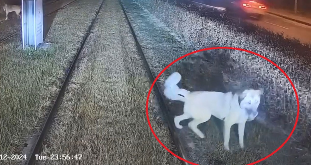 Eroğlu, acil fren yaparak tramvayı durdurdu. Araçtan inen Eroğlu ile yolcular köpeği kurtarırken, o anlar güvenlik kamerasına yansıdı.