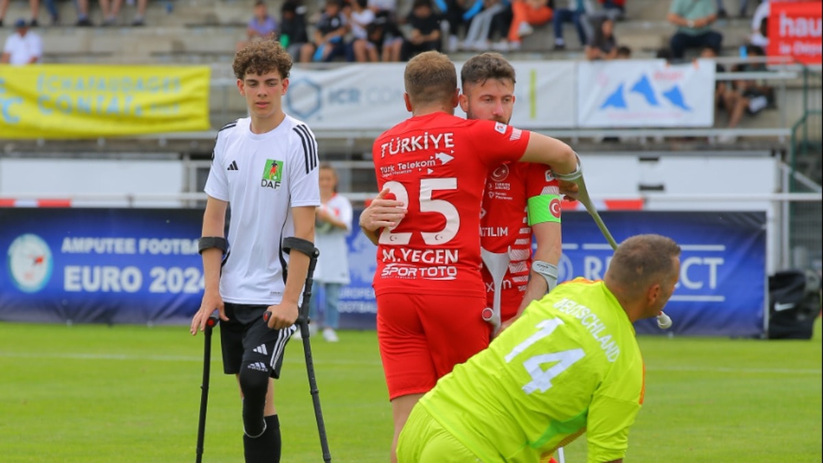 Ampute Milli Futbol Takımı, Fransa’nın Haute-Savoie bölgesindeki Evian-les-Bains kentinde düzenlenen 2024 Avrupa Ampute Futbol Şampiyonası’nda çeyrek final mücadelesinde Almanya ile karşı karşıya geldi. Almanya’yı 11-0 mağlup eden Türkiye, adını yarı finale yazdırdı.