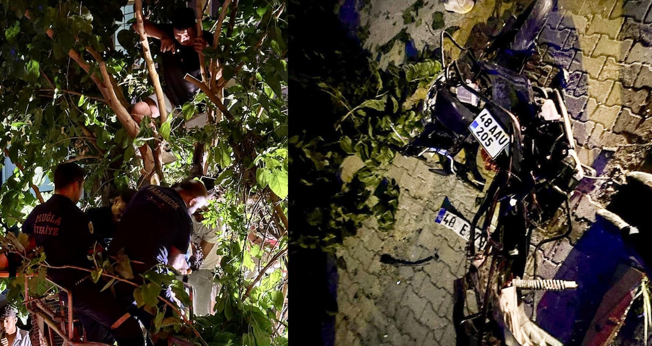 Hürriyet Mahallesi’nde meydana gelen kazada ismi henüz öğrenilemeyen bir motosiklet sürücüsü, kaza sonrası savrulduğu yaklaşık 5 metrelik ağaçta asılı kaldı.