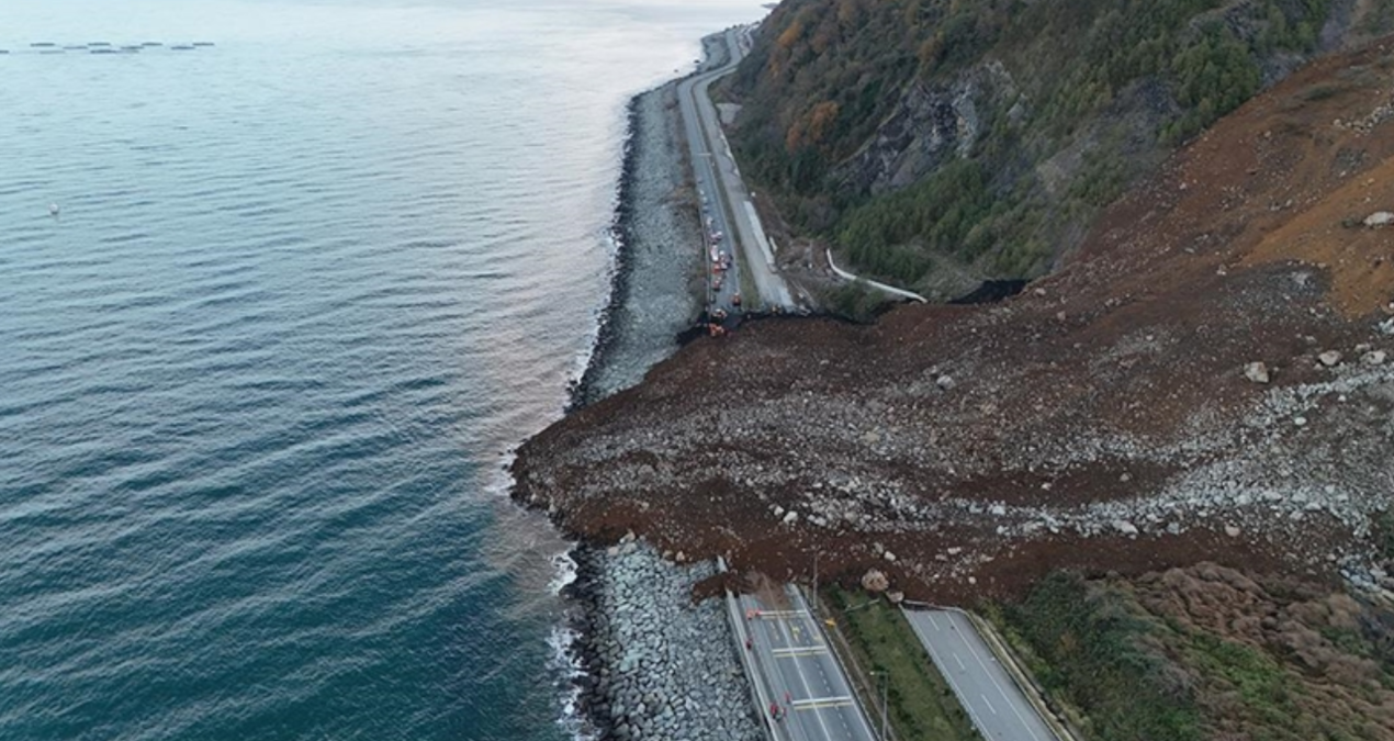 Heyelanın meydana geldiği Arhavi’nin Kıyıcık mevkisinde, iş makinelerince diğer şeridin açılması için yapılan çalışmalar gece boyunca devam etti.