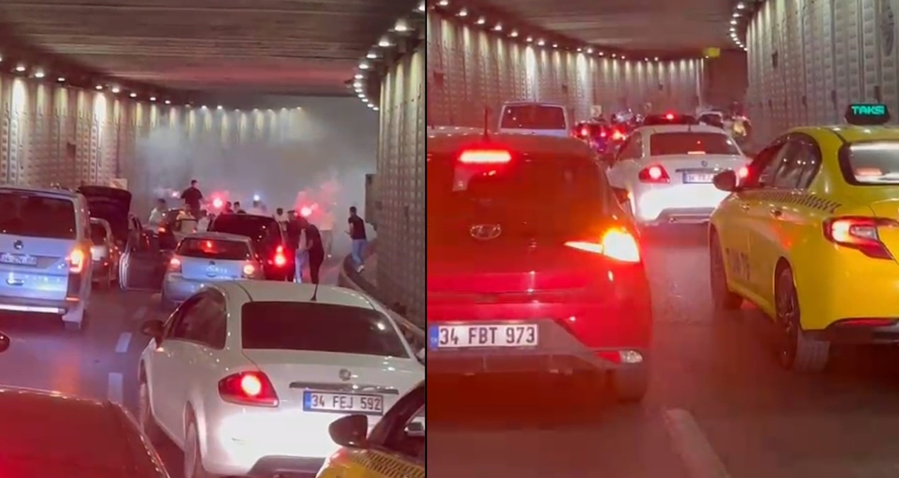 İstanbul Ümraniye’de asker eğlencesi yapan bir grup alt geçitte araçlarını durdurarak trafiği kapattı. Meşaleler yakan gruba, trafikteki diğer sürücüler kornalara basarak tepki gösterdi. O anlar bir vatandaş tarafından cep telefonu kamerasıyla görüntülendi.