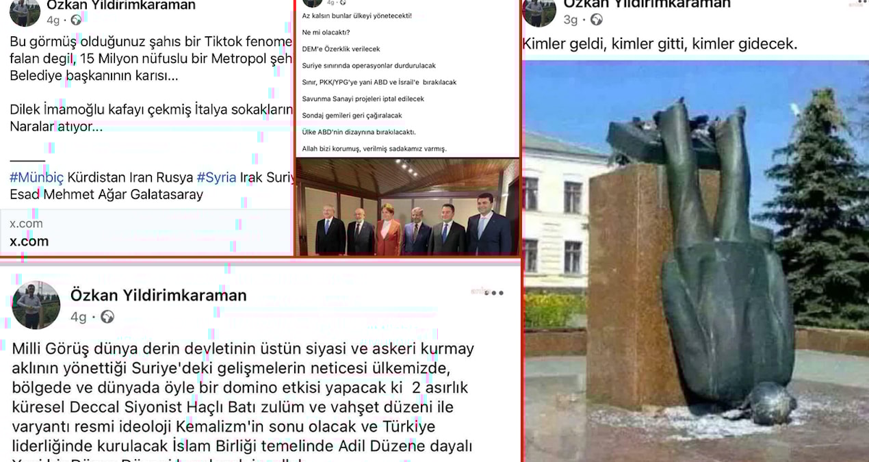 *Söz konusu şahıs sosyal medya paylaşımlarında bir eğitimciye yakışmayan ifadeler kullanarak, AK Parti üyesi bir siyasetçi gibi politik görüş açıklamış; bunun ötesine geçerek Gazi Mustafa Kemal Atatürk’e, onun ilke ve inkılaplarına, Cumhuriyetimize ve laikliğe hakaret etmiştir. Hatta cihat çağrıları yaparak ‘İslam devleti’ güzellemeleri ile laikliğe karşı çıkmıştır.
