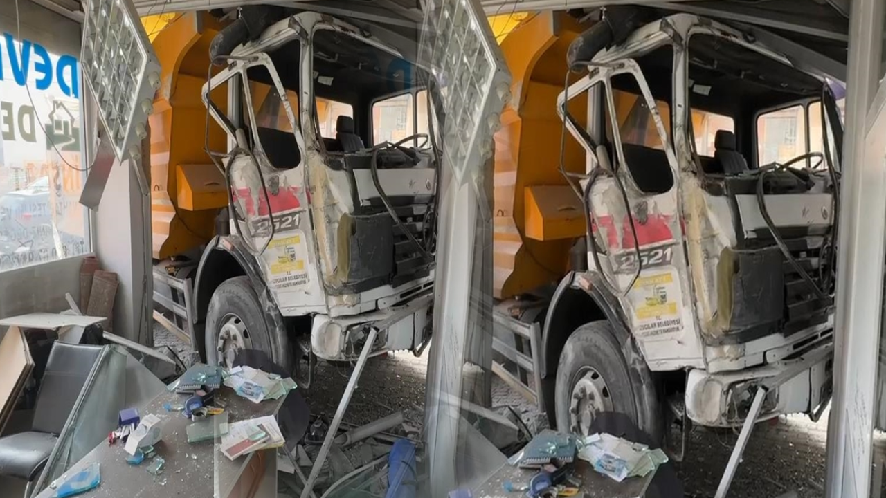 Avcılar’da panik anları: Kamyon iş yerine girdi