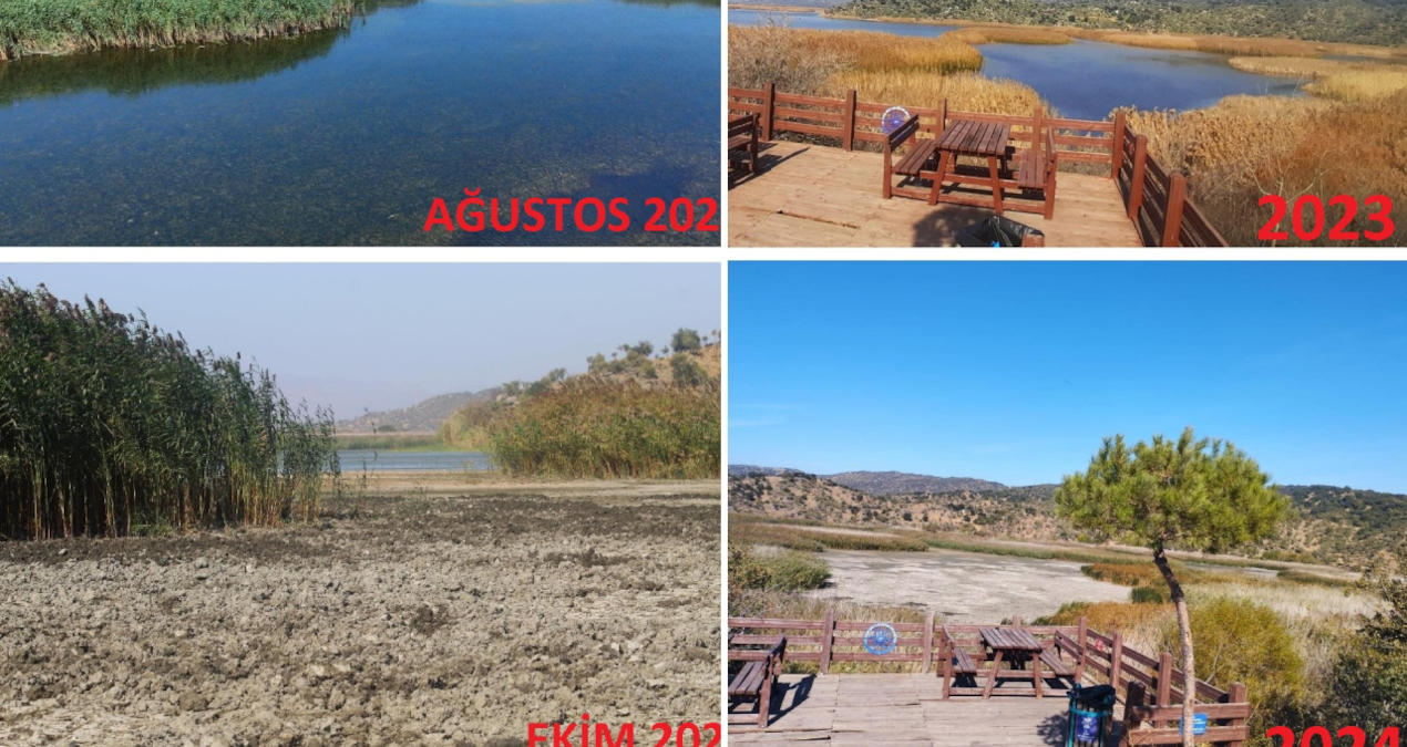Sürücü açıklamasının devamında ise “Göldeki su seviyesinin nedeni kuraklığa bağlı olsa da en önemli nedenlerden biri de Beşparmak Dağları’ndaki maden ocaklarıdır. Ocaklardan yağışlarla birlikte göle akan maden toprakları gölün tabanını doldurarak sığlaştırmakta ve su hacminin azalmasına neden olmaktadır.