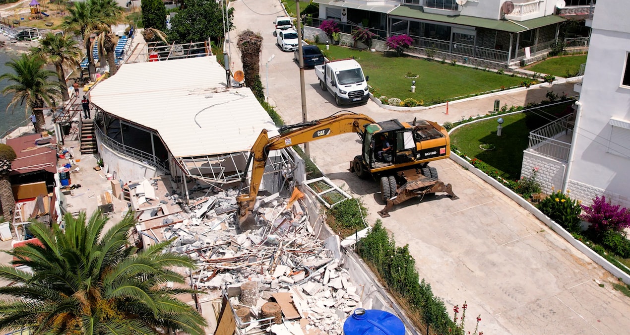 * Balıkesir’in Ayvalık ilçesine bağlı Küçükköy Mahallesi’nde vatandaşlardan gelen şikayetlerin ardından bir işletmenin mevzuata aykırı bir şekilde tonoz sistemi, çit, parmaklık ve tel örgü yaptırdığı tespit edildi. Bu kapsamda alandaki izinsiz yapının yıkımı Çevre Şehircilik ve İklim Değişikliği Bakanlığı denetiminde, Ayvalık Kaymakamlığı koordinasyonunda ve Ayvalık Belediyesi tarafından gerçekleştirildi. Türkiye’nin doğal güzelliklerinden olan kıyı ve denizlere vatandaşların erişimini engelleyen tüm unsurların yıkımı Kurban Bayramı sonrasında da devam edecek.”