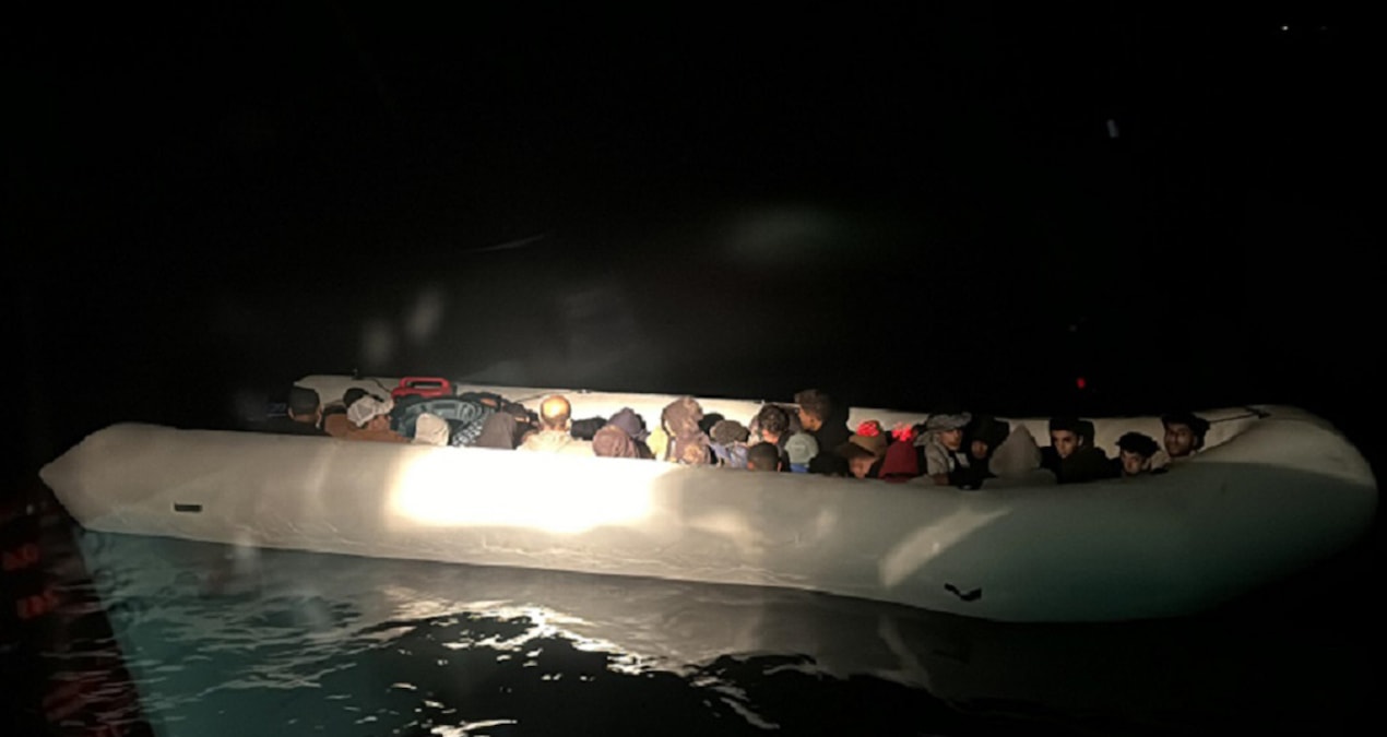 Bölgeye doğru Sahil Güvenlik botu “KB-115” ile harekete geçen ekipler, Midilli Adası’na gitmeye çalışan bottaki 20’si çocuk, 39 düzensiz göçmeni yakaladı.