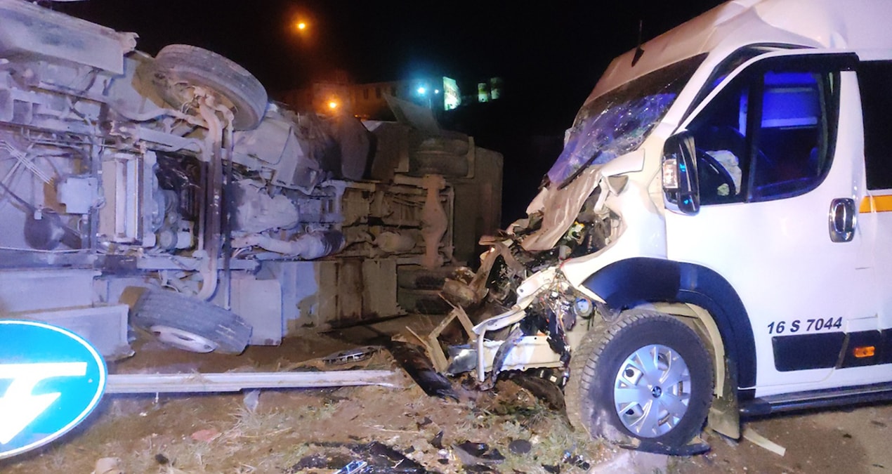 Bursa kara yolu Küçük Sanayi Sitesi kavşağında, Memduh K. (55) idaresindeki 16 S 7620 plakalı servis midibüsü ile Hüseyin S. (53) yönetimindeki 16 S 7044 plakalı servis minibüsü çarpıştı.