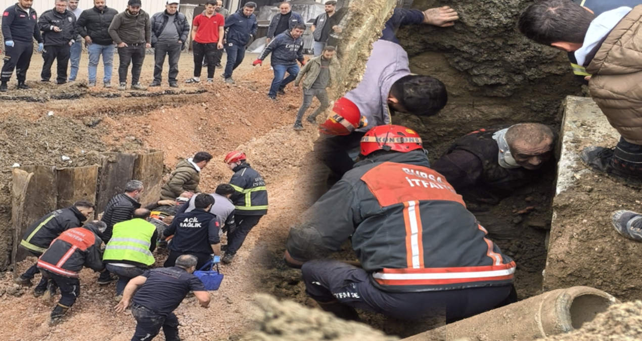 Toprak altındaki işçinin kurtarılma anı kamerada