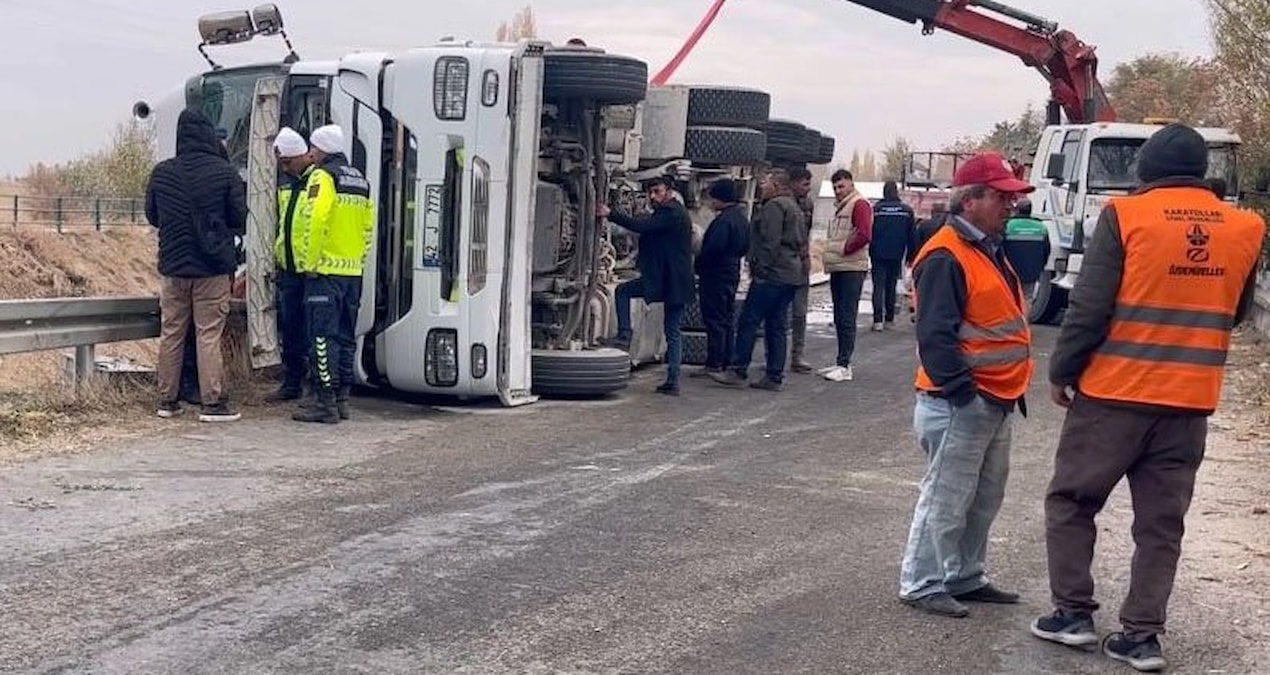 Konya’da devrilen kamyonun sürücüsü hayatını kaybetti