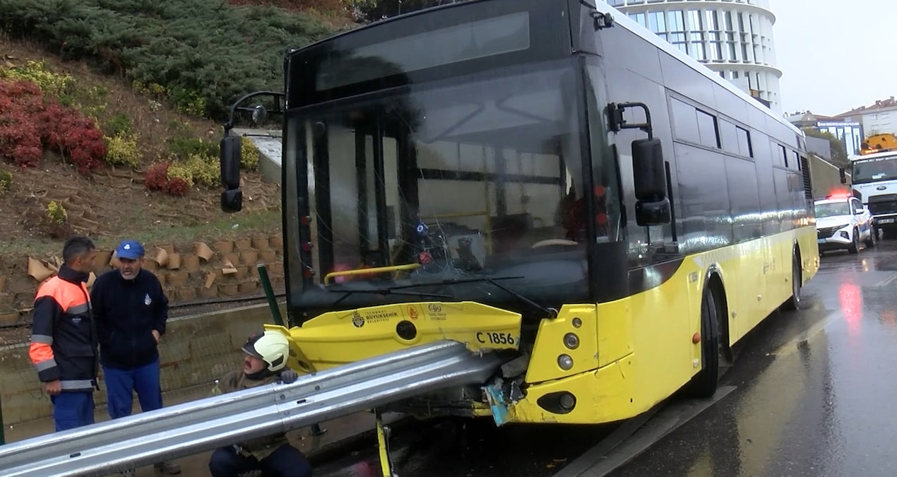 İETT otobüsü bariyere ok gibi saplandı