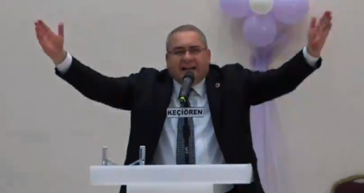 Davette konuşma yapan Özarslan, salonda Türk bayrağı ve Atatürk posterinin yer almadığını görünce büyük tepki gösterdi.