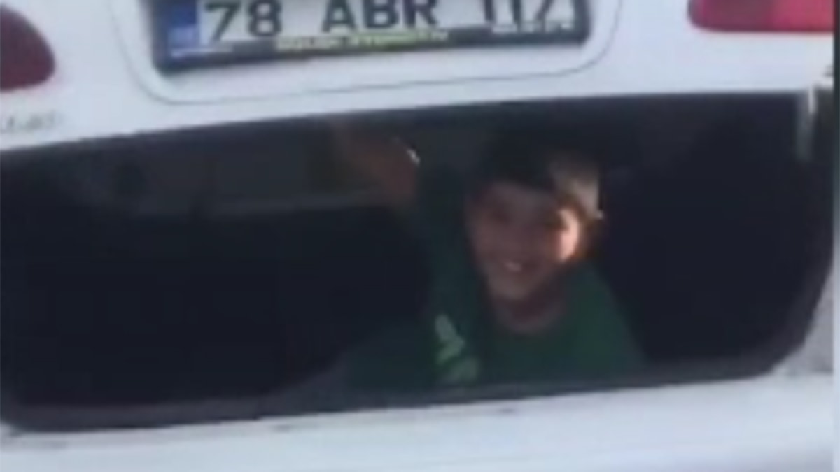 Dün, Karabük-Safranbolu kara yolunda bir sürücü, 78 ABR 117 plakalı otomobilinin bagajına bindirdiği çocukla kapağı açık şekilde trafikte tehlikeli şekilde yolculuk yapmış ve yaşananlar vatandaş tarafından cep telefonu kamerasıyla kaydedilmişti.