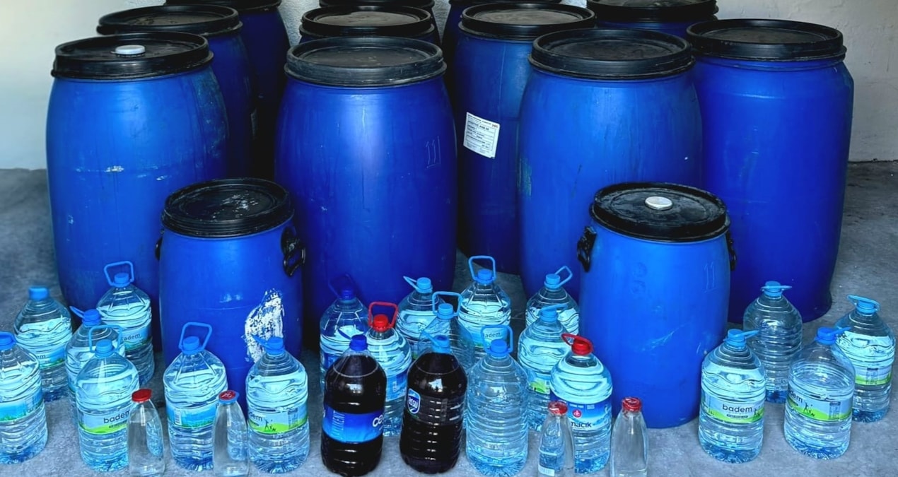 O.Ö. ve İ.Ö’ye ait iki evde yapılan aramada plastik varillerde depolanmış yaklaşık 3 bin litre sahte içki ele geçirildi.