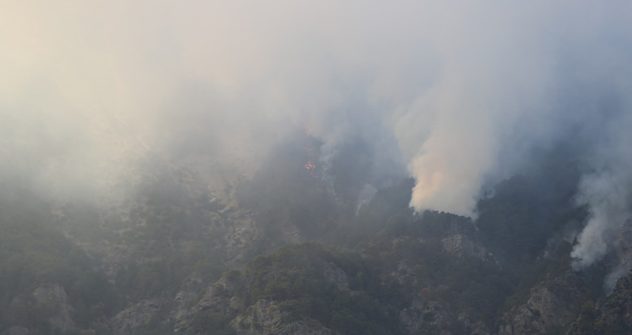 Valilikten yapılan açıklamada, yerleşim alanları için tehdit oluşturmayan yangını kontrol altına almak için çalışmaların aralıksız sürdüğü belirtildi.