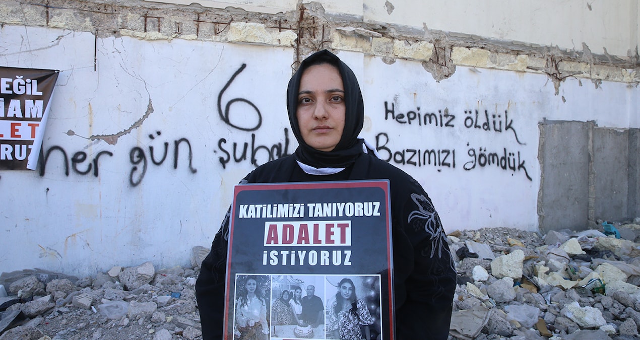 “Burada hayatını kaybeden 44 canımız için adalet nöbeti başlattık. Burası kentsel dönüşüm ile yapılan 5 yıllık bir binaydı ve depremin 8. saniyesinde yerle bir oldu. Hiçbir kimseye yaşam alanı bırakmadı. Belediyeye sadece 400 metre uzaklıkta olan bu binanın 3 buçuk katı, kaçak yapıldı ve ne yazık ki ne belediye ne de yapı denetim firması tarafından hiçbir şekilde müdahale olmadı. Yetkililere buradan seslenerek ilk davanın üzerinden 16 ay gibi süre geçmesine rağmen kaçak yapıya göz yuman ilgililerin soruşturmaya dahil edilmesini talep ediyoruz.”