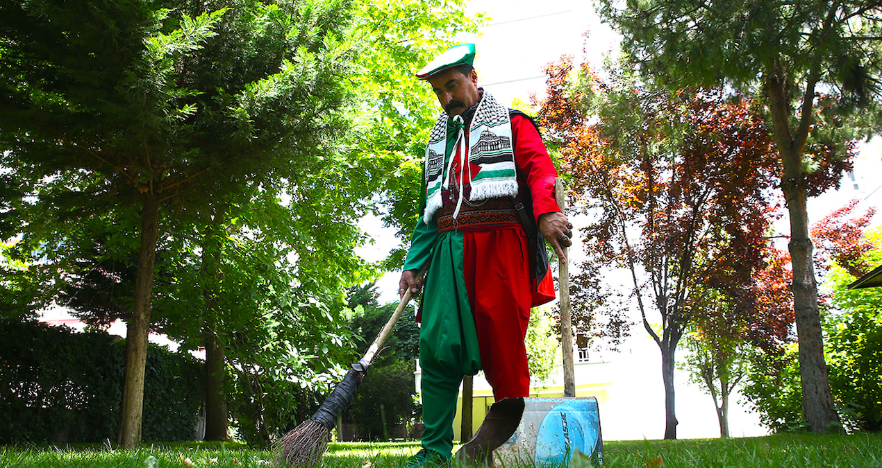 Günlük giyindiği yeşil kırmızı renklerdeki kıyafetlerinin üzerine Filistin bayrağı asan, boynuna Filistin’i temsil eden atkı takan Tekçi’nin protestosu bununla da sınırlı kalmadı. Tekçi, bina sakinlerinin siparişlerini temin ederken İsrail menşeli ürünleri satın almıyor.