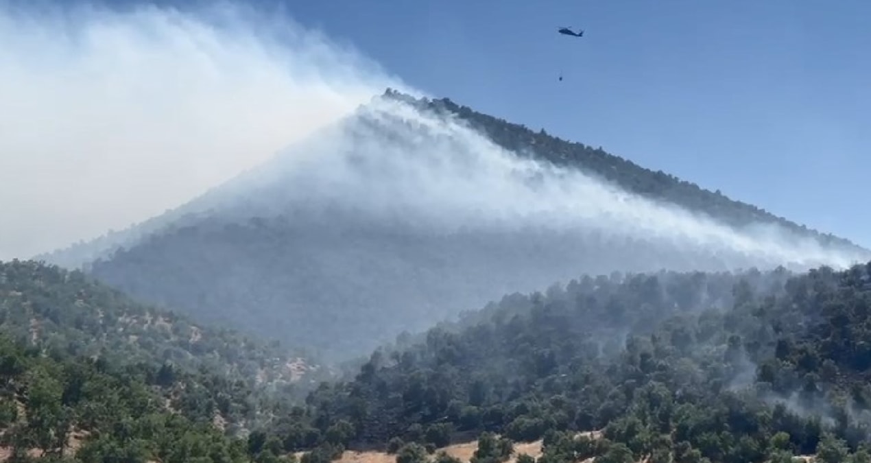 İhbarla bölgeye itfaiye, Orman İşletme Müdürlüğü ile yangın söndürme helikopteri sevk edildi. Ekiplerin alevlere müdahalesi sürüyor.