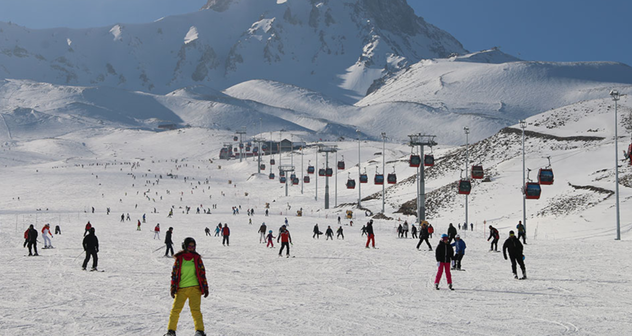 Hafta sonu tatilini Erciyes’te geçirmek isteyen ziyaretçiler, İç Anadolu’nun “zirvesi” olarak nitelendirilen Erciyes Dağı’na akın etti.