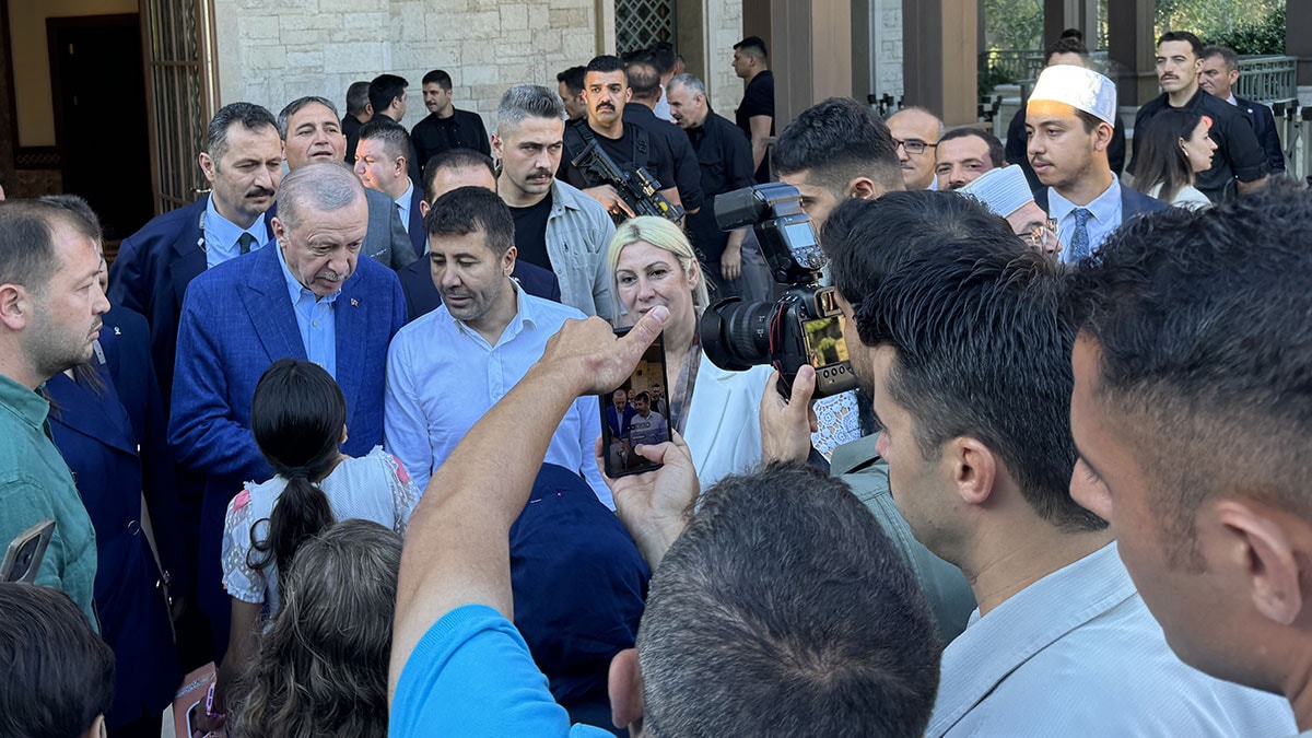 Erdoğan, cami çıkışında vatandaşlarla bayramlaşarak sohbet etti. Vatandaşlar ve çocuklar, Erdoğan ile fotoğraf çektirdi.