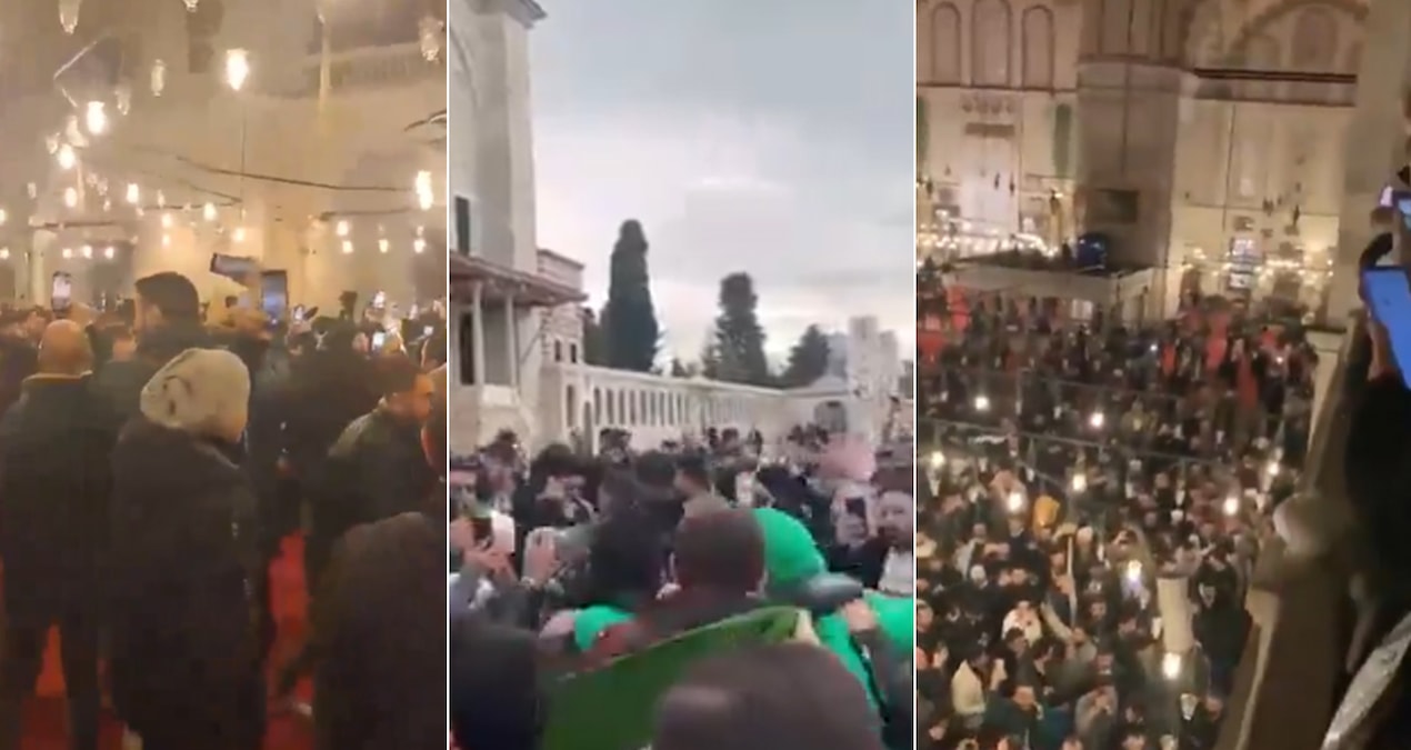 Haberin yayılmasının ardından İstanbul’daki Fatih Camii’nde de tekbirler getirildi, avluda toplanan kalabalık ise Suriye bayraklarıyla kutlama yaptı.