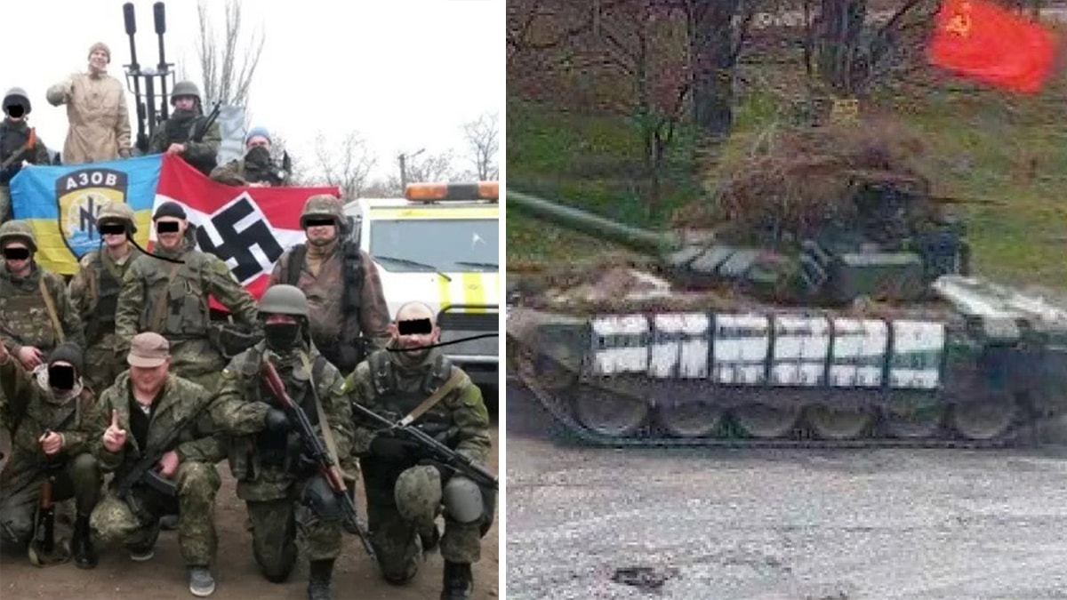 Diğer yandan Ukrayna’yı nazilerden arındırmak için bu savaşı başlatan Rusya, Naziler tarafından kurulan paralı asker grubu Wagner’ı ve aşırı sağcı Rus Emperyalistleri’ni orduya piyade olarak katıyor. SSCB’yi yeniden kurmak isteyen koyu komünistler, Rus T-72 tanklarında kızıl ordu bayrağını dalgalandırıyor.