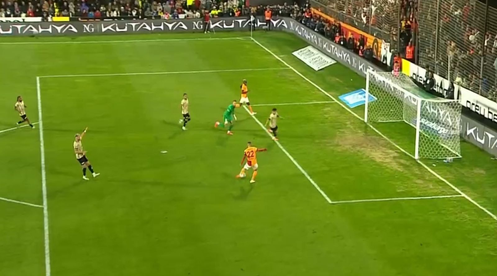 Karşılaşmanın 62. dakikasında Yunus Akgün’ün yerine oyuna dahil olan Hakim Ziyech, boş kaleye topu gönderemedi. Orta sahada Victor Osimhen kaptığı topta hızla ilerleyip ikiye bir kaldığı kontraatakta klaeci ile karşı karşı pozisyonda topu sağda bomboş olan Hakim Ziyech’e aktardı. Hakim Ziyech altıpasta sol ayağıyla gelişine yaptığı vuruşta topun dibine girince bomboş kaleyi bulamayıp topu farklı bir biçimde üstten auta attı.
