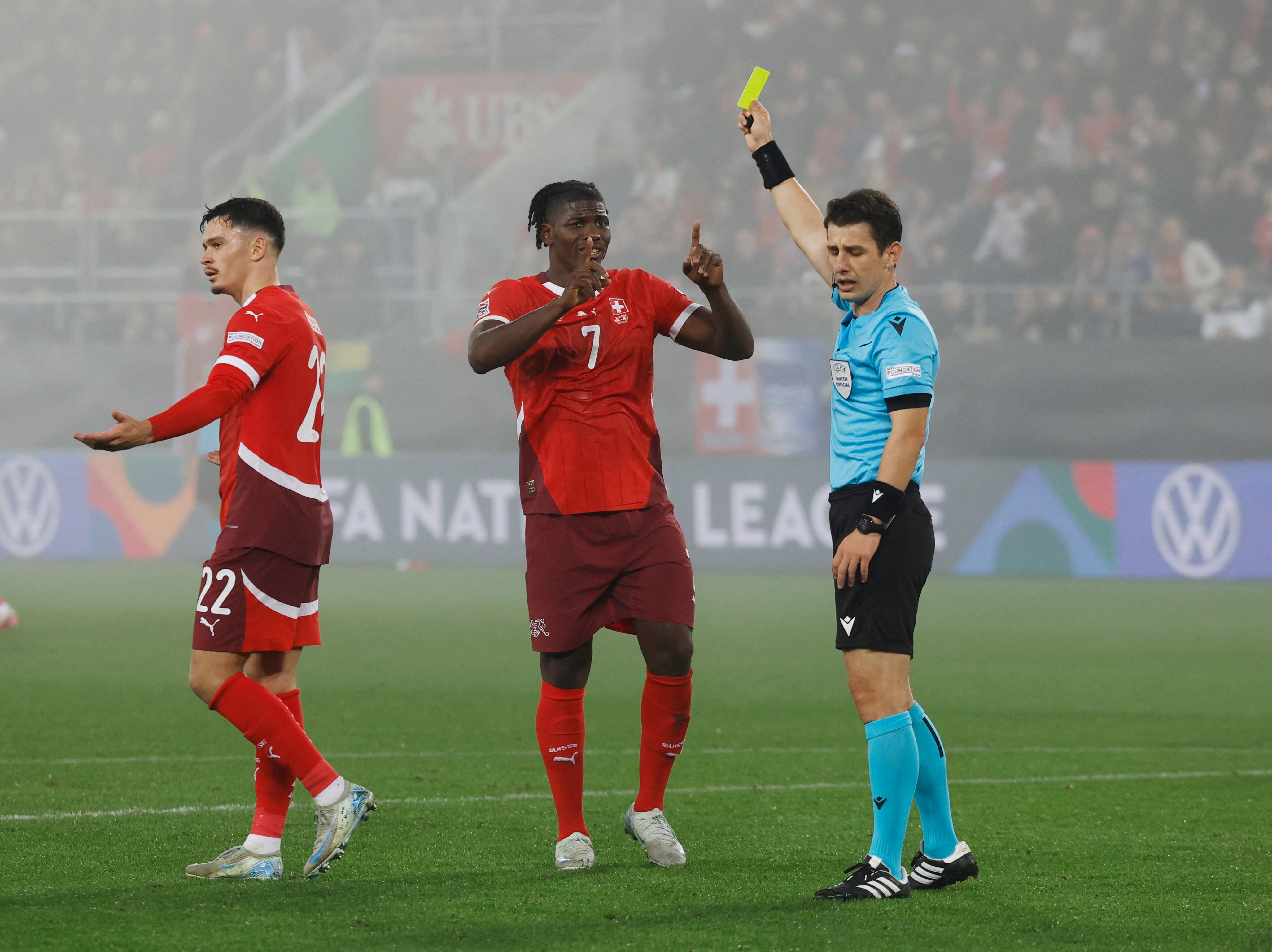 Öte yandan Halil Umut Meler, karşılaşmada 3 kez kartına başvurdu. İsviçre’de Nico Elvedi ile Fabian Rieder’e kartını gösteren Meler, Danimarka’da ise Rasmus Kristensen’e sarı kartını çıkardı. Halil Umut Meler 45+1’inci dakikada İsviçre lehine penaltı kararı verirken, 53’üncü dakikada da Danimarka’nın golünde pozisyonu VAR’dan izleyerek ofsayt gerekçesiyle iptal etti.
