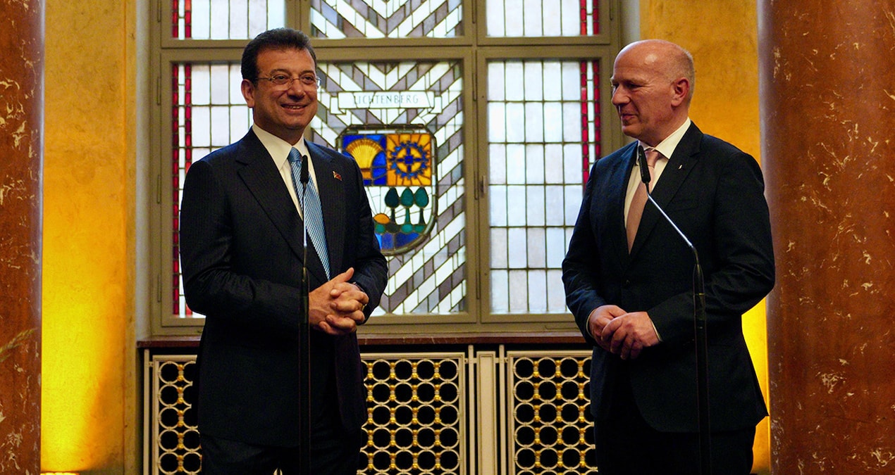 Türkiye Belediyeler Birliği (TBB) ve İstanbul Büyükşehir Belediye (İBB) Başkanı Ekrem İmamoğlu, İstanbul-Berlin arasında imzalanan “kardeş şehir” anlaşmasının 35’inci yıl dönümünde Almanya’da Berlin Belediye Başkanı Kai Wegner ile bir araya geldi.