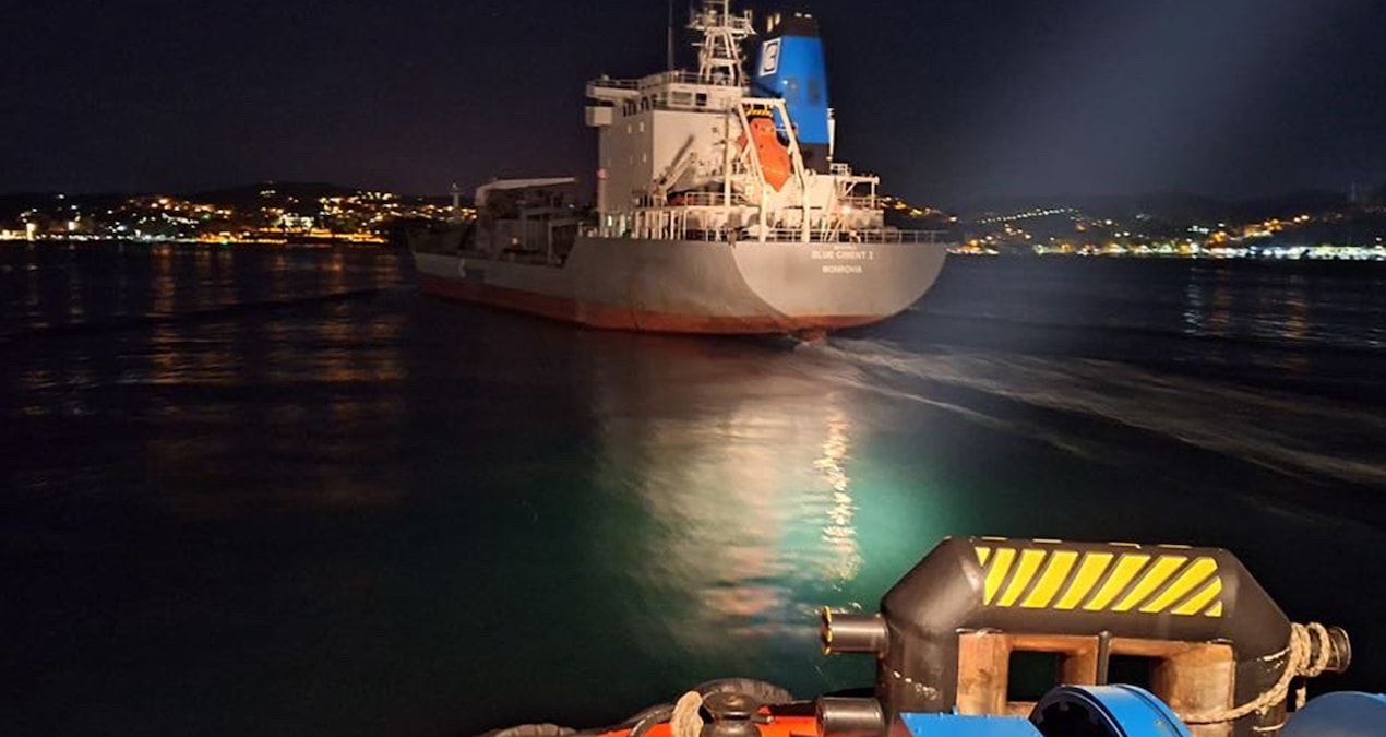 İstanbul Boğazı’nda makine arızası yapıp sürüklenerek sahile çarpan ‘Blue Cıment 1’ isimli gemi, Kıyı Emniyeti Müdürlüğü ekiplerinin müdahalesiyle çekildi.