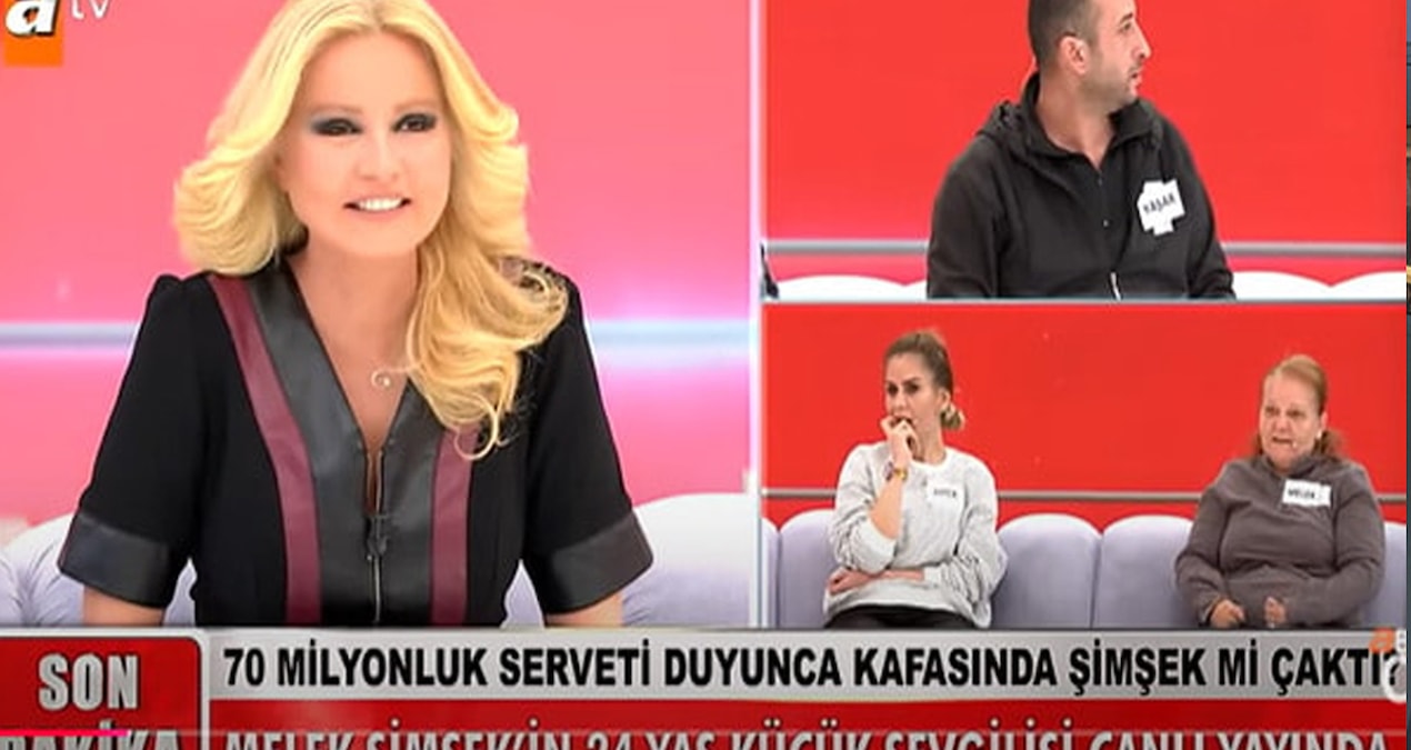 Kahramanlarımız Melek Hanım 56, Yaşar Bey 33 yaşında. ‘Toksik ilişki nedir’in cevabı olan çift, 12 yıldır birlikte. Tanışma yerleri tabii ki sosyal medya. (Müge Anlı sosyal medyadan tanışmaya çok karşı) Melek Hanım’a babasından kalan 70 milyon liralık bir miras söz konusu. Fakat burada ata sporumuz amca, dayı, teyze ya da hala tarafından dolandırılma hikâyesi de devreye giriyor ve Melek Hanım şu an mirasına ulaşamıyor.