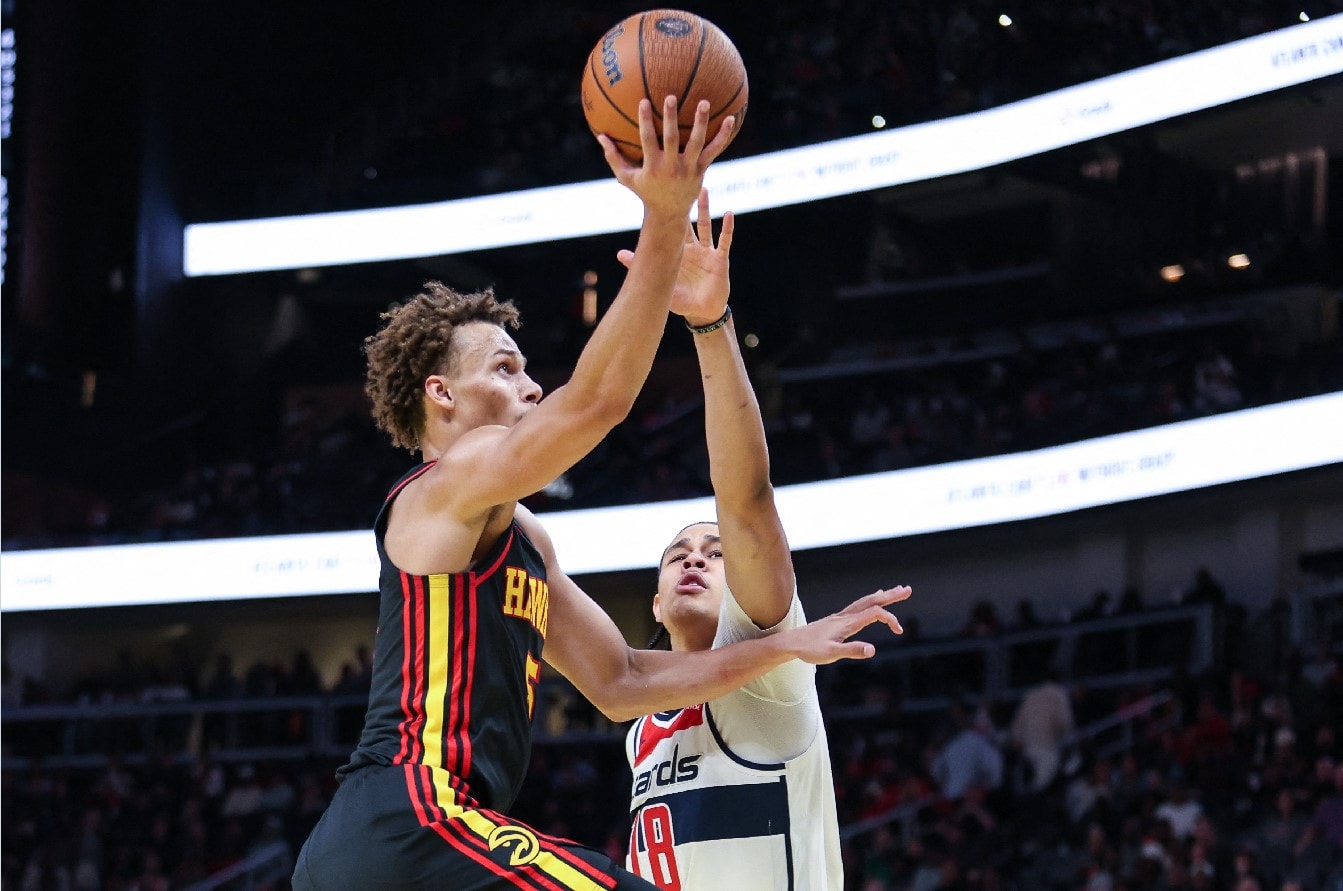 NBA’de Atlanta Hawks’ın Washington Wizards’ı 129-117 mağlup ettiği maça Dyson Daniels damga vurdu. Atlanta’nın yıldızı,  25 sayı, 6 top çalma, 4 ribaunt, 3 asist ve 2 blokluk performansıyla göz doldurdu. Daniels, maçta denediği 14 şutun 10’unu sayıya çevirmeyi başardı.