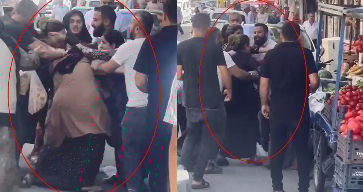 Mardin Kızıltepe’de çarşıda karşılaşan iki grup kadın, henüz belirlenemeyen nedenle tartışmaya başladı.