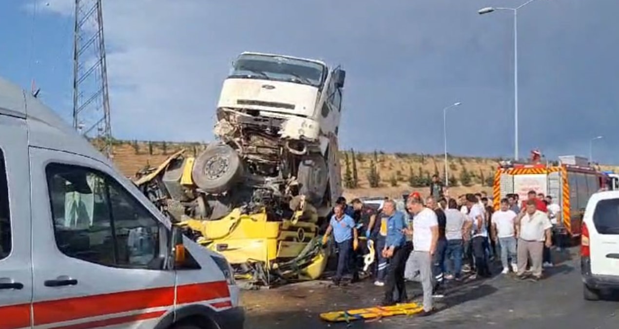 Gaziantep- Nizip karayolunun 5’inci kilometresinde sürücüsünün ismi öğrenilemeyen 21 GJ 033 plakalı kamyon, kontrolden çıkarak aynı şeritte ilerleyen Doğan Korkmaz’ın kullandığı 27 ALS 671 plakalı TIR’a çarpıp üzerinde asılı kaldı.