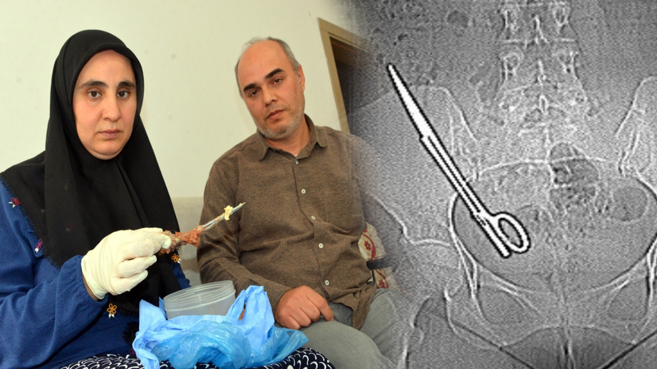 Baş ağrısı şikayetiyle gittiği hastanede doktorların ‘Karnında makas var’ deyince şoke olduğunu belirten Fatma Kala, 2017 yılında kist ameliyatı olduktan sonra iç kanama geçirdiğini ve tekrar ameliyata alındığını, makasın da o ameliyatta unutulduğunu söyledi. Karnında makas varken küçük çocuğu ile birçok defa MR odasına girdiğini belirten Kala, “Bundan 7 yıl önce özel bir hastanede ameliyat oldum. O günün gecesinde tekrar iç kanama geçiriyorum ve ikinci ameliyatımı oluyorum. Bu ameliyatta maalesef ameliyat olan bölgemde ameliyat makası unutuyorlar ve biz bunu 7 sonra öğreniyoruz. Baş ağrısından dolayı hastaneye gittik. Hastanede doktorumuz MR’a girmem gerektiğini söyledi. Ben MR teknisyenine daha önce çocukla beraber MR odasına girdiğimde benim sağ tarafımda çekme olduğunu söyledim. Teknisyen bana ‘Bu şekilde seni MR’a alamam, çok tehlikeli. Acilen ameliyat olduğun doktoru bul’ dedi. Doktorumuz bizi hemen röntgene aldı. Röntgende bir yabancı cisim görmüş ama bize söylemedi, ‘Daha önceki ameliyatından dolayı bir komplikasyon oluşmuş. Seni ameliyat edip dedi o komplikasyonu ortadan kaldırmam gerekiyor’ dedi. Biz doktorun telaşlı tavrından şüphelendik. Eşimle birlikte tıp fakültesine gittik. Oradaki acil doktorlarına başımızdan geçen olayı anlattık. Onlar beni röntgene soktu. Oradan ilaçlı tomografiye girince daha önceki ameliyatımda bırakılan makas orada görüldü. Genel cerrahi bölümünde bu makas çıkarıldı” diye konuştu.