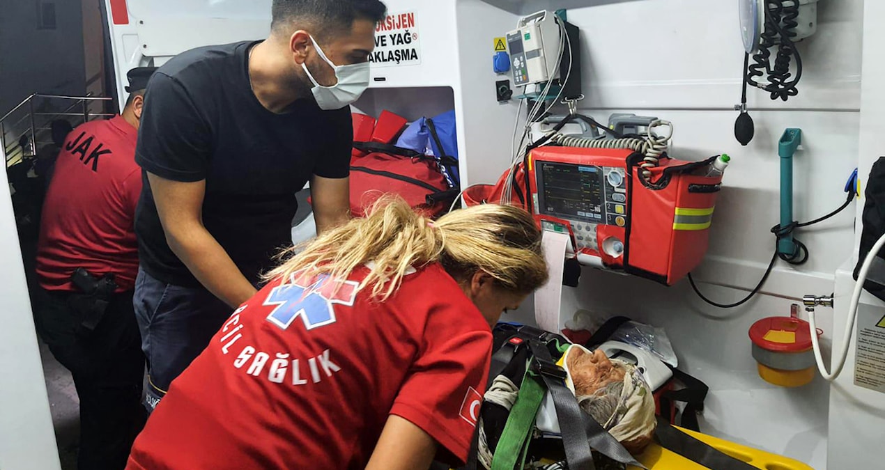 Yüksekten düşen kadın, ekiplerin çalışmasıyla bulunduğu yerden çıkarılarak tedavisi için hastaneye götürüldü.