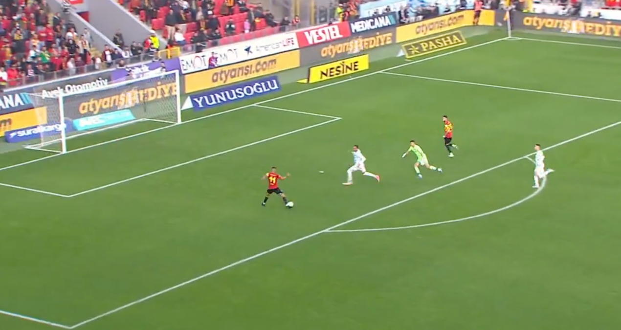 Trendyol Süper Lig’in 15. haftasında Göztepe ile Adana Demirspor karşı karşıya geldi. Karşılaşmanın ilk yarısında herkesin şaşırdığı bir pozisyon yaşandı.