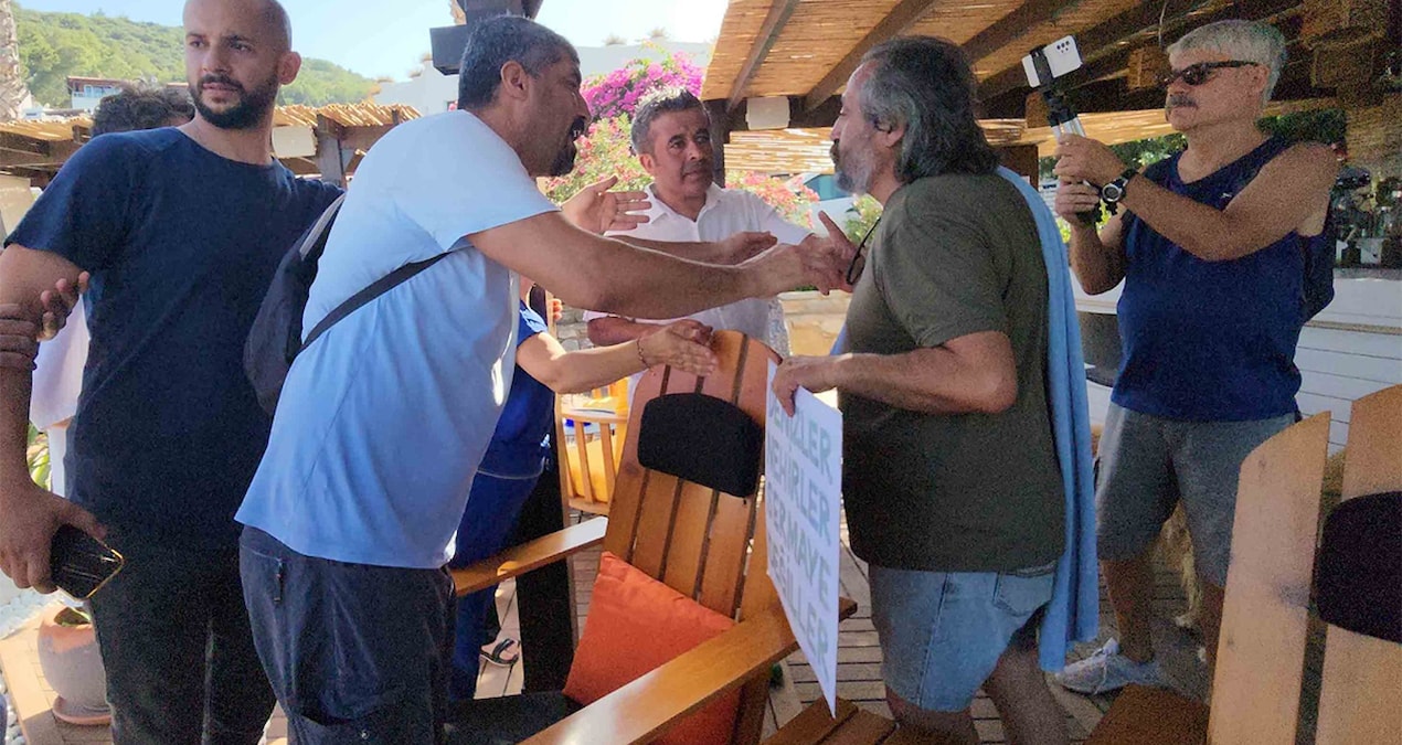 Eylemciler de “Ödediğiniz kira değil ecrimisil cezası ve burası halkın yeri. Halkın yerini işgal etmişsiniz halka tepki gösteriyorsunuz” cevabını verince ortalık gerildi ve bazı otel yöneticileri ile personelleri, eylemcilere saldırdı.