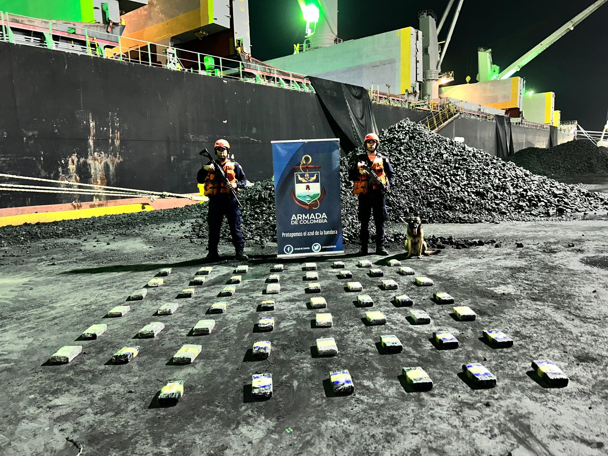 Kolombiya Deniz Kuvvetleri’ne bağlı birimler, 26 Ekim gecesi Barranquilla limanının terminallerinden birinde bir kargo gemisine gizlenmiş 54 kilogram kokain ele geçirdi.