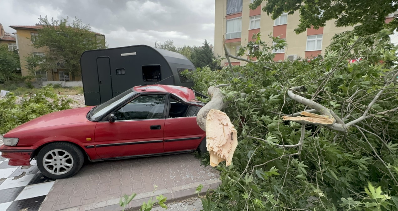 Konya’da şiddetli rüzgar: Ağaçlar söküldü, yangın çıktı