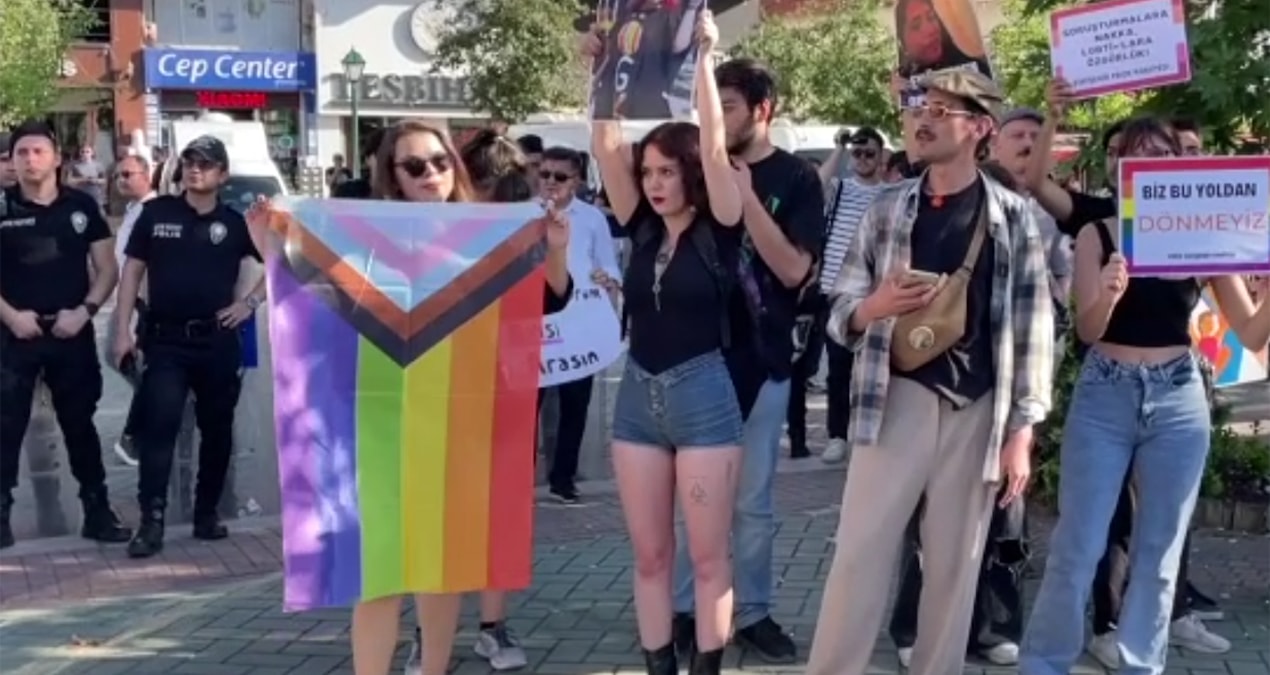 İl Emniyet Müdürlüğü ekipleri, LGBT bayrağı açarak sloganlar atan grubun çevresinde geniş güvenlik önlemi aldı.