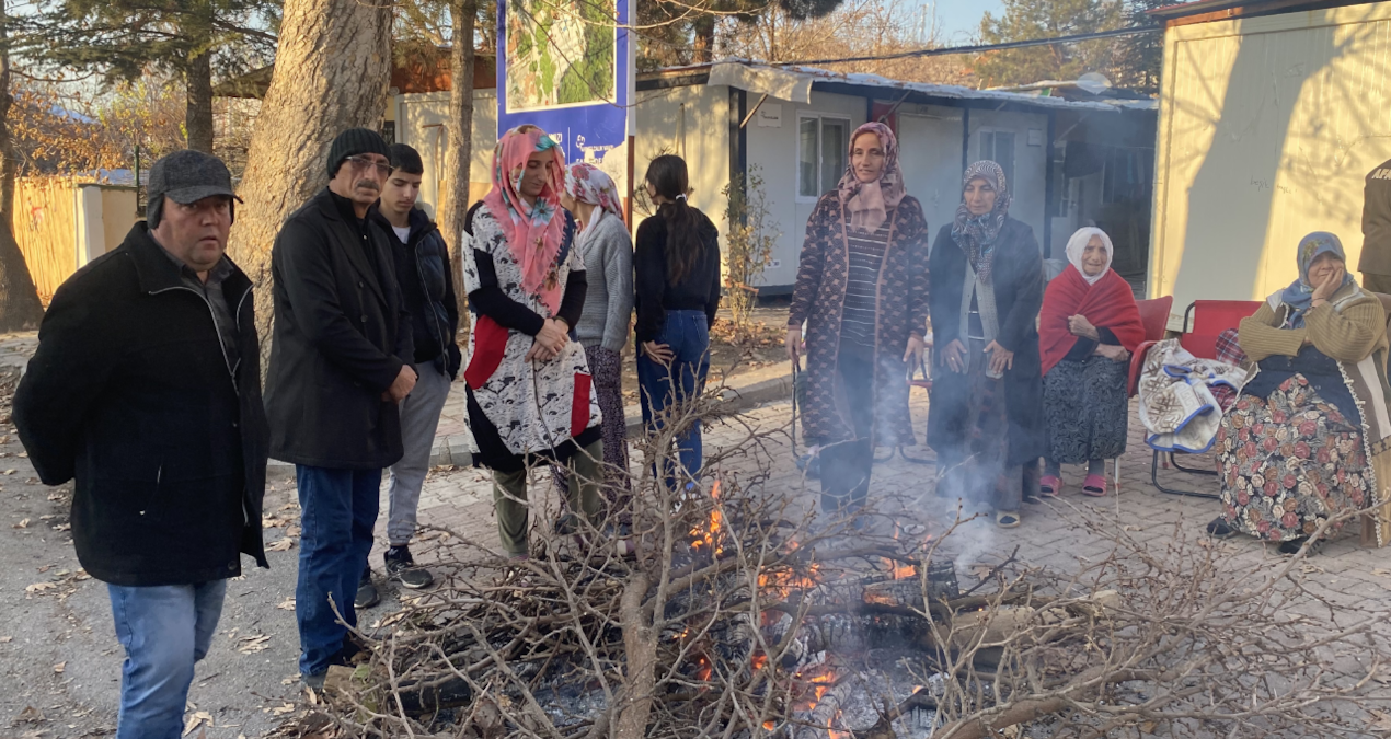 “Malatya’ya Yeşilyurt doğumluyum. Burada doğduğum, burada büyüdüm, burada ikamet ediyorum. Burada iki senedir, depremden beri ikamet ediyorum. Şu anda yaşadığımız sorun, 4 gündür, hatta 5 gündür ‘Bugün 5’inci gün’. Elektriğimiz sürekli kesiliyor, şalter atıyor; ana trafodan. Ve biz kendi imkanlarımızla maalesef o şalteri kaldırmak zorunda kalıyoruz, can tehlikesiyle beraber. Ekipleri çağırdığımız zaman, Aksa’yı çağırdığımız zaman, bu bizle ilgili bir şey değil, AFAD’ın yapması gerektiğini söylüyor. AFAD’ı arıyoruz, ‘bu bizlik bir şey değil’ Büyükşehir’in yapması gerekiyor. Dün biz burada toplandık, mecburen ateş yakmak zorunda kaldık. Çünkü konteyner bu, içindeki elektrik olmadığı zaman, ısıtıcının çalışmadığı zaman, dışarıdan soğuk aldı. Ateşimizi yaktık, kırk beş tane polisle doldu. Yani polislerin bir suçu yok, polisleri yığarak bir çözümle getirilemez. Şu an dün yaptıklarını zannettik, dün bir şeyler yapıldı, yapılmamış. Bugün de yapılıyor ama adam diyor ki, şu an benim yaptığım da sıkıntı, mesela yangın çıkar diyor. Bizim de şu an can tehlikemiz var. Yani biz sorunlarımız var, biz devletin düşmanı değiliz. Biz devletimizi, milletimizi seven insanız. Bizim tek derdimiz çözüm, çözüm, çözüm. Başka bir sıkıntımız yok.”