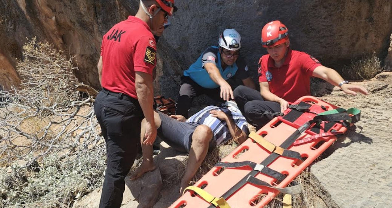 Muğla’nın Fethiye ilçesindeki Kelebekler Vadisi’ne tatile gelen 40 yaşındaki Mahmut Kula, hatıra fotoğrafı çekerken uçuruma düştü. Kula’nın yaklaşık 60 metrelik uçuruma düştüğünü gören yakınları yardım istedi.