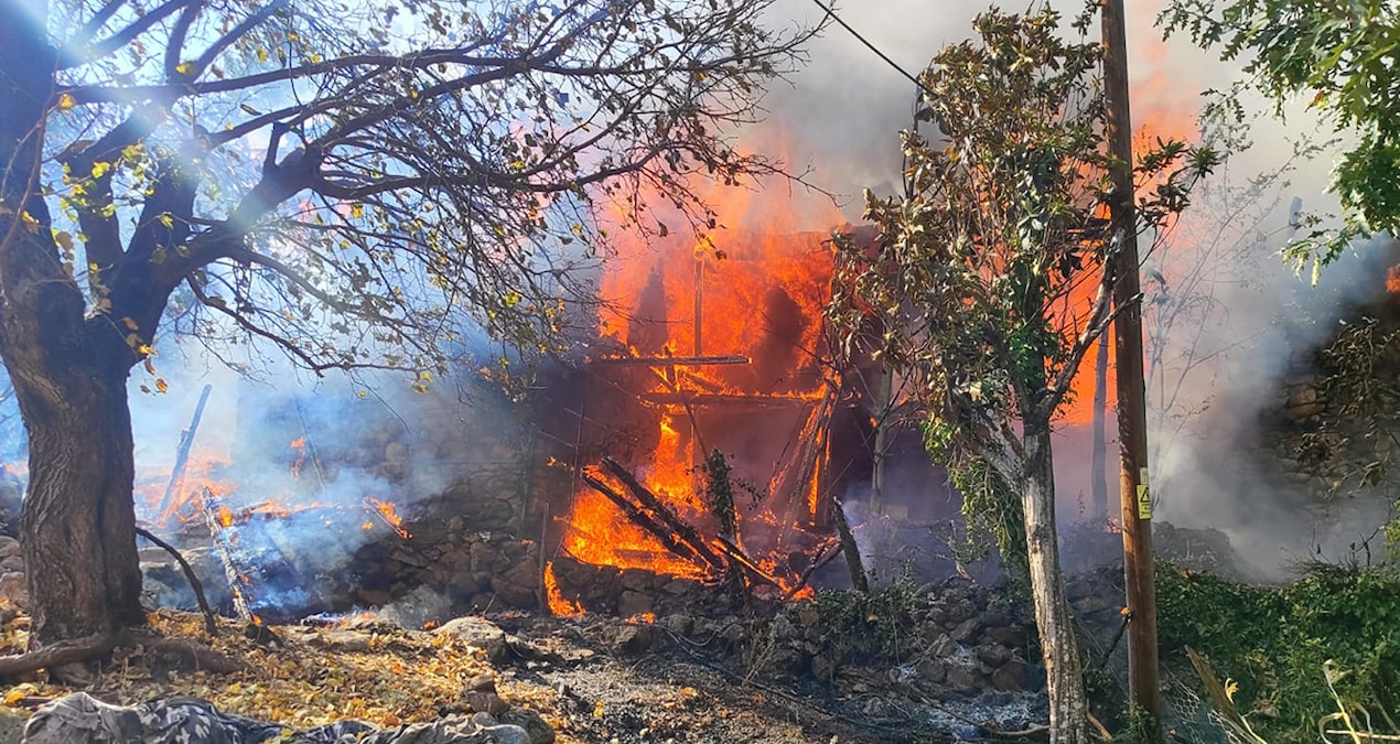 Yangın sebebiyle ev ve meyve bahçesi zarar gördü.
