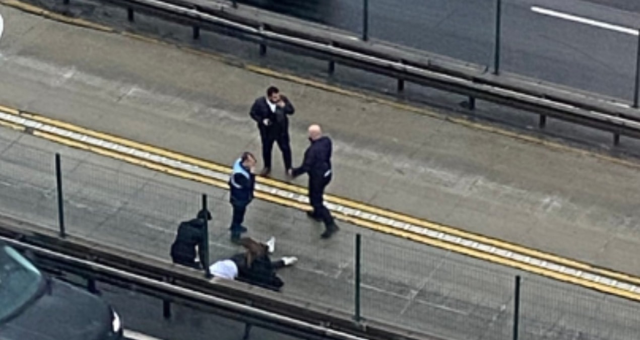 Kapıya tutunur vaziyetteki bir yolcu kapıyla birlikte metrobüs yoluna düştü, dakikalarca sürüklendi.