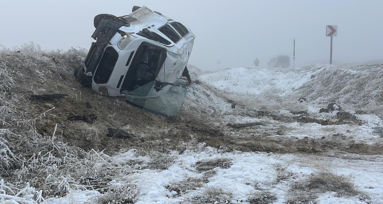 Muş’un Malazgirt ilçesinde, Medeni Ağalar idaresindeki plakası öğrenilemeyen minibüs, Malazgirt-Ahlat kara yolunun Sarıdavut köyü yakınlarında, yoğun sis ve buzlanma nedeniyle yoldan çıkarak devrildi.