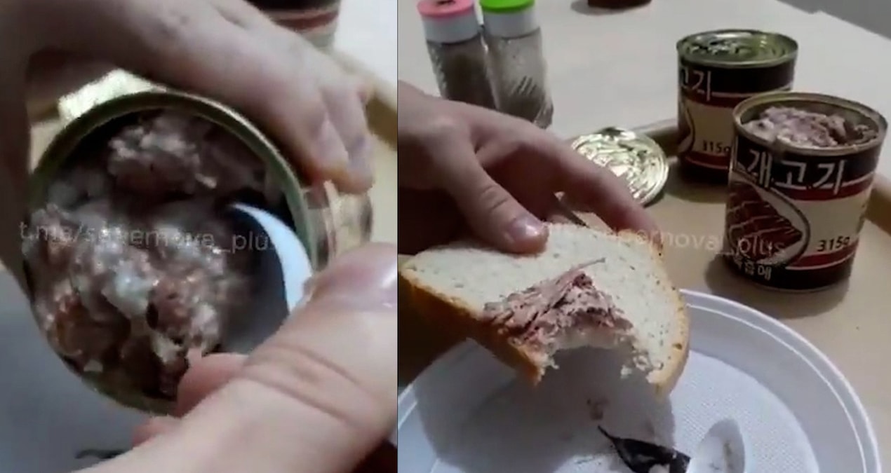Sosyal medyada paylaşılan bir videoda bir Rus askeri, ‘kardeş ülke’ sayesinde elde ettiği erzakın tadına kamera karşısında baktı. Sonradan kutunun üzerindeki Korece yazıları çeviren Rus askerleri, konserve kutudan çıkanın köpek eti olduğunu öğrendi.